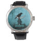Uhr, Klassische Damenuhr mit schwarzen Lederarmband