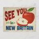 Eine bezaubernde New Britain Connecticut Vintage Reise-Postkarte mit einem schönen roten Apfel, zusammen mit lustigen Retro-Text, der sagt: "See you in New Britain"
