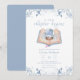Cute adorable modern winter baby shower theme, Holiday baby shower theme, design feature dusty blue watercolor winter floral storybook decor with Christmas winter snowflake snowball, blue winter flower, leaves and script calligraphy typography "The new chapter begins". you can customize your own unique text and color.