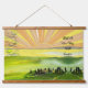 Wood topped Wall Tapestry, a rustic touch with vivid sunrise colours on mountain silhouette with an inspirational quote. The illustration features bright orange, burnt sienna sun rays with birds returning/migrating on a green scenery backdrop. Just right for 'home decor' / 'wall art' / 'home accent' to brighten your walls. Gift it on an occasion like house warming/renovation and more. The TEXT is customizable with your choice of font & script.