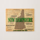 New Hampshire Staatsstolzbild einschließlich Vintage Karten-Silhouette mit Großstädten, Städten und Spitznamen.