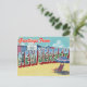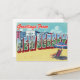 This cheerful, retro-style design captures the classic fun of the Jersey Shore. It features the iconic "Greetings from NEW JERSEY" typography set against a sunny beach scene, showing a person relaxing in a deck chair under an umbrella and coastal buildings in the background. The design elements showcase the iconic beach and sailing culture of the Garden State. Perfect for fans of vintage travel posters, retro artwork, beach vacations, and classic shore memories. This is an ideal souvenir or gift for locals and visitors.