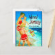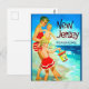Postkarte mit dem Bild aus einem Vintage Poster für die New Jersey Küste mit einer Mutter und zwei Kindern am Meer.
