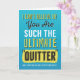 Express congrats for your coworker, even if they are leaving you d with this fun typography style card which jokingly states, "I CAN"T BELIEVE IT! You are such the ultimate DATE" in bold white, yellow, and black letters on turquoise background. Headline is followed by this smaller caption in white "Okay, I admit your new job is a pretty good entschuldigung." inside has the following message (but can be customized to fit your needs). Seriously, I'm sorry to see you leave, but genuinely excited for you and all your great opportunities ahead. Best of luck with your new job!