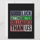 Die Karten passen genau in ein Kuvert der Größe C6. Die Farben sind schön satt und die Kanten der Buchstaben perfekt - auch auf der Rückseite