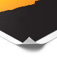 Das neue Mexiko im Stil eines alten Reiseplakats mit einfachen Formen, lebhaften Farben und einem Vintagen Schriftart. Eine Silhouette in Schwarz liegt vor einer riesigen Gelbsonne mit orangefarbenem Himmel, die an die Berglandschaften rund um Santa Fe, Taos oder Albuquerque erinnert.