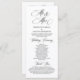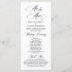 Der neue Mr. und Mrs., Elegant Vintage klassische Schwarz-Weiß-Design Thema, Hochzeit Zeremonie Programm in Karte (lang). Es ist mit Scrollakzent entworfen, der personalisiert werden kann mit benutzerdefiniertem/personalisiertem Text für Ihr Brautparty, Zeremonie Details, Gedenkhinweise und Dankeschön-Nachricht.