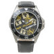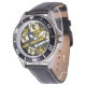 Herrenuhr aus Edelstahl mit schwarzem Lederarmband