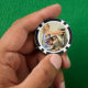 Wirklich niedliche und detaillierte Button-up-Abbildung von Gil Elvgren. Dieses niedliche Button muss im Sommer einen Reifen wechseln.