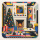 A vibrant, modern Christmas scene blending Memphis Style, New Wave 1980s shapes, Mondrian-inspired color blocking, and Roy Lichtenstein-style pop-art textures. This bold holiday scene features a decorated tree, glowing fireplace, and graphic patterns that make your greeting feel energetic, artistic, and unforgettable. Perfect for design lovers who appreciate a little flair with their festive cheer.