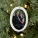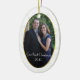 Weihnachtsbaumschmuck nach Maß aus dem Foto in ovaler Form. Ein blassweißer Spitzenhintergrund hat einen gerahmten ovalen, ausgeschnittenen Foto-Bereich, und Text am unteren Rand liest, Our First Christmas 2010. Personalisieren Sie, indem Sie ein eigenes Foto hinzufügen und den Text ändern, wenn Sie etwas Anderes gewollt. Großartiges erstes Ornament für die Neugeborenen und macht ein nettes Geschenk.