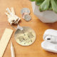 Doppelgoldene Ox-Papier-Schnitt-Stil-Illustration mit golden 2021 und Jahr des OX + Zazzle's Filter zu erhalten "Bronze" Farbe. Design auf einfachem runden Schlüsselanhänger mit texturiertem Papier (gedrucktes Bild) als Hintergrund. Matching Grußkarte, Urlaub Postkarte, Einladung, T - Shirt und Tasse. Perfekt für das chinesische Neujahr des OX 2021.
