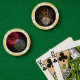 Decorative poker chips make excellent party decorations or table scatters for a New Year's Eve party. Check our other listings for different color outer rings and other designs. Personalize it with your group's name.