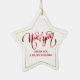 Star-shaped ceramic ornament with the front displaying the festive message “New Year, I Wish You a Happy Holiday.” The reverse side shows a graceful deer in a snowy forest, giving a second charming view when customers open the product gallery. Double-sided print — a warm holiday greeting on one side and a peaceful winter scene on the other. Perfect as a Christmas tree accent or a thoughtful seasonal gift.