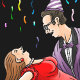 A cute couple dances at a New Year party with confetti falling around them.
