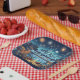 In the foreground, a group of people gather around a cozy fire pit, enjoying each other's company and the festive spirit. The scene is filled with warmth, laughter, and the anticipation of the new year. The artwork's intricate details, including the twinkling lights, the bustling city streets, and the festive decorations, create a sense of wonder and excitement.
