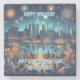 In the foreground, a group of people gather around a cozy fire pit, enjoying each other's company and the festive spirit. The scene is filled with warmth, laughter, and the anticipation of the new year. The artwork's intricate details, including the twinkling lights, the bustling city streets, and the festive decorations, create a sense of wonder and excitement.