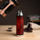 New Yorker Schwarz-Rot-Wasser-Flasche mit New Yorks Stadtbild und Skyline. Modernes Design. Benutzerdefinierter Text auf der Wasserflasche. Ändern Sie den Text oder verließ, wie er ist. Verwenden Sie die Vorlage, um Ihre eigene New Yorker Skyline-Wasserflasche zu erstellen.