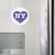 Dieser Magnet zeichnet sich durch ein lebendiges blaues Herz aus, das die fett-, weiß-, Großbuchstaben NY enthält, die offizielle Abkürzung für New York, den Empire State.