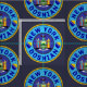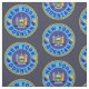 New York bosnisch American Cotton Fabric. Bosnisch-New Yorker Design in Blues und Gelb, mit der Staatsflagge von New York in der Mitte und der Flagge von Bosnien-Herzegowina auf der Seite.