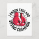 Das Bild zeigt ein Paar roter Boxhandschuhe, positioniert in einer klassischen Kampfhaltung, mit den Worten "NEW YORK BOXING" in fett schwarzer Schrift umrahmt. Die Handschuhe sind mit weißen Akzenten und gelben Schnürsenkeln detailliert, was dem Design eine Touch Realismus verleiht. Der Hintergrund ist schlicht weiß, sodass sich das kräftige Rot der Handschuhe und der fette schwarze Text auffallen lassen.