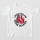 Das Bild zeigt ein Paar roter Boxhandschuhe, positioniert in einer klassischen Kampfhaltung, mit den Worten "NEW YORK BOXING" in fett schwarzer Schrift umrahmt. Die Handschuhe sind mit weißen Akzenten und gelben Schnürsenkeln detailliert, was dem Design eine Touch Realismus verleiht. Der Hintergrund ist schlicht weiß, sodass sich das kräftige Rot der Handschuhe und der fette schwarze Text auffallen lassen.