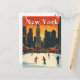Eine wunderschön illustrierte Postkarte mit einer festlichen New Yorker Skaten-Szene unter einem strahlenden Urlaubshimmel. Ein zeitloser amerikanischer Weihnachtsmoment, perfekt für Sammler und Reisende.