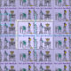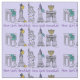 Fabric besticht durch verschiedene New Yorker Gebäude und Sehenswürdigkeiten, die für den Urlaub "gekleidet" sind, mit NEW YORK HANUKKAH in einem lila Schriftart. Erstellt aus einer originalen Stift-und-Tinte-Illustration.