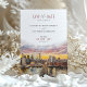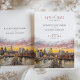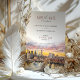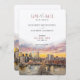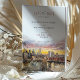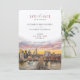 Diese wunderschön gestaltete rett-the-date-Karte hebt eine elegante Darstellung der Skyline von New York City hervor, wobei die Brooklyn Bridge als Mittelpunkt steht. Ein atemberaubender Sonnenuntergang in Aquarellfarben dient als Hintergrund und zeigt reiche Pfirsichtöne, Blüten, Lavendel und Gold. Die warmen und lebhaften Farben harmonieren nahtlos mit dem Stadtbild und schaffen eine romantische und elegante Atmosphäre. Die moderne Typografie in Rose und Schwarz fügt eine raffinierte Touch hinzu, die das Kunstwerk perfekt ergänzt. Ideal für Hochzeiten in der Stadt, ist diese rett-the-date-Karte eine perfekte Einführung in eine Stadt-thematische Feier, die moderne Eleganz mit künstlerischem Flair verbindet. Der Sonnenuntergang und das detaillierte Stadtbild machen es zu einer praktischen Erinnerung und zu einem wunderschönen Sake.