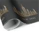 Eine saubere und elegante grafische Abbildung mit der ikonischen Skyline von New York City. Wichtige Sehenswürdigkeiten wie das Empire State Gebäude und die Freiheitsstatue werden in einem minimalistischen, goldenen Linien Kunststil dargestellt. Der Text "NEW YORK" wird in einem passenden goldenen Schriftart unterhalb der Stadtmauer geschrieben. Das Design ist Set auf einem soliden, dunkelgrauen Hintergrund und schafft eine moderne Ästhetik.