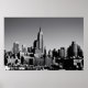 Ein wunderschönes Schwarz-Weiß-Foto der Skyline von New York City mit dem Empire State Gebäude, dem Chrysler Gebäude und anderen klassischen Gebäude, die die Skyline der Innenstadt von Manhattan bilden.