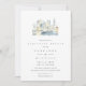 Dieses moderne Probe Dinner Invasion verfügt über eine Aquarell-Skyline-Szene in New York City auf der Spitze chic Typografie