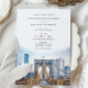 Diese elegante Hochzeitseinladung bietet eine atemberaubende Aquarelldarstellung der Brooklyn Bridge und der Skyline von New York City. Das Design, das sowohl auf der Vorder- als auch auf der Rückseite der Karte gezeigt wurde, verwendet coole Stahlblau-, Blassgrau- und Weichgold und schafft so einen atemberaubenden Kontrast zu den mächtigen Gebäude. Der weiche Aquarelleffekt verleiht den ikonischen Bildern ein romantisches und zeitloses Ambiente und ist somit die perfekte Wahl für eine Hochzeit zum Thema Stadt. Die raffinierte Typografie in tiefer Holzkohle und subtiler Rose verstärkt das Gesamtdesign und vereint das Kunstwerk mit moderner Eleganz. Ideal für Paare, die ihre Hochzeit in einem urbanen Ambiente ausrichten, oder für diejenigen, die die architektonische Schönheit New Yorks einfach schätzen, verspricht diese Einladung, die Gäste mit Liebe zum Detail und künstlerischer Eleganz zu beeindrucken.
