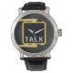 NYC Crosswalk Don't Talk / Talk Sign präsentiert unser originelles Grafikdesign des klassischen Walk / Don't Walk Croswalk Schildes in rot, schwarz und gelb mit einer lustigen Drehung mit dem Wort Talk in Weiß auf der Vorderseite und Dont Talk in rot auf der Rückseite. Jeder, der manchmal etwas Platz braucht, ohne mit ihm zu reden, wird dieses lustige Design genießen.