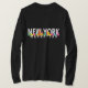 New York Manhattan Retro-Design mit cooler City Skyline mit Palmen und Gebäude. Ein perfekter Treffpunkt für Ihren nächsten Städtereis, Städtereisen oder Sommerurlaub oder einfach so einfach wie jeden Tag.