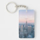 New York Manhattan Custom Text Ombre Pink Blue Skyline Sunset Schlüsselanhänger: Schöner rosa und blauer Sonnenuntergang über der New Yorker Manhattan Skyline.