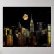 New York Skyline bei Nacht mit Vollmond Poster