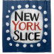 Ein lustiges und niedliches typografisches Nachrichtendesign mit dem Titel "New York Slice". Er hat schwarz-roten Text auf einem weißen Rechteck mit funky, spielerisch weißen Punkten, die ihn umgeben, alle auf blauem Hintergrund.