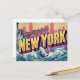 This uniquely stylized, retro-inspired design features the iconic "Greetings from NEW YORK" typography alongside the Statue of Liberty and the Manhattan skyline. The dramatic foreground is dominated by large, stylized ocean waves, giving the piece a distinct, almost Ukiyo-e inspired feel combined with classic American travel art. Perfect for fans of vintage posters, retro artwork, New York City landmarks, and bold artistic styles. This is an ideal souvenir or gift for anyone who loves the Empire State.