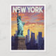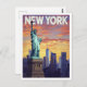 New York Travel Poster: Statue of Liberty Sunset Postkarte