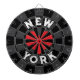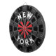 NEW YORK Weißer Text über schwarzes Holzkohleherz Dartscheibe