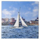 Elegantes Segelboot, das über den New Yorker Hafen gleitet, mit der Skyline von Manhattan im Hintergrund. Diese Szene verbindet maritime Tradition mit der pulsierenden Energie einer der berühmtesten Uferpromenaden der Welt.