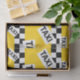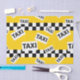 Taxifahrer in New York, Gelb, Schwarz und Weiß. Ideal für Taxifahrer, New Yorker und Reisende. Taxischilder und Schwarzweiß-Schachbrettmuster.