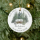 Dieses Ornament ist ein großartiger Vorwand, um dem ersten Weihnachtsfest der Familie in Ihrer neuen Zuhause zu gedenken. Auf der Rückseite befindet sich ein Foto mit Namen und Jahr auf der Vorderseite, und im Winter eine Aquarelllandschaft einer Hütte, eingebettet in den Kiefernwald.