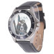 Herrenuhr aus Edelstahl mit schwarzem Lederarmband