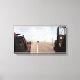 Ein Leinwand mit einem Foto von Newkirk Feuerwehrfahrzeugen in Rauch.