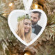 Niedliche Weihnachtsschmuck zum Gedenken an Ihr erstes Weihnachtsfest verheiratet. Auf der Vorderseite füllt Ihr Bild einen weißen, herzförmigen Rahmen. Auf der anderen Seite können Sie die Ausdrücke "1. Weihnachten", "Mr. & Mrs." personalisieren und Ihre Namen und das Jahr personalisieren, alles in der saisonalen roten Typografie vor einem weißen Hintergrund.