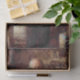 Dieses Design zeigt ein Gemälde des englischen Künstlers James Campbell (1828-1893), der Teil einer Gruppe aus Liverpool war, die durch den Pre-Raphaelite Stil beeinflusst wurde. Das Bild ist eine berührende und intime Darstellung der familiären Liebe und Sorge, Set vor dem Hintergrund des Lebens Mitte des 19. Jahrhunderts. Campbell, bekannt für seine Genregemälde, die oft Szenen des Alltags darstellen, fängt einen Moment tiefer emotionaler Resonanz in diesem Werk ein. Die Szene ist Set in einer bescheidenen Handwerkerwerkstatt, wo ein älterer Mann, die zentrale Figur, gezeigt wird, der einen Brief in den Händen hält. Der Titel des Gemäldes "News From My Lad" legt nahe, dass der Brief vom Sohn des alten Mannes stammt, der wahrscheinlich weit weg von der Zuhause arbeitete oder diente. Die Haltung des alten Mannes ist eine von Müdigkeit und Alter, mit seinem leicht gebeugten Rücken, während er den wertvollen Brief sorgfältig hält und liest. Sein verwittertes Gesicht, geprägt durch den Durchgang der Zeit, vermittelt eine komplexe Mischung aus Emotionen, wie Sorge, Sehnsucht und vielleicht einen Hoffnungsschimmer, während er die Nachrichten von seinem Sohn absorbiert. Die Art und Weise, wie er den Brief in seinen Händen packt, legt seine Bedeutung nahe und macht deutlich, dass dies kein gewöhnlicher Briefwechsel ist, sondern ein Briefwechsel, der tiefe persönliche Bedeutung hat. Die Werkstatt des älteren Mannes ist voll mit den Werkzeugen seines Handwerks, die ein Leben in ehrlicher, harter Arbeit anzeigen. Er scheint ein Schlosser zu sein; an der Decke hängen Schlüssel. Die verschiedenen Werkzeuge und Einrichtungsgegenstände verteilen sich auf den Raum, und die Details der abgenutzten Ziegelsteine, der Holzflächen, der groben Holzbalken und der überdachten Regale verleihen dem Raum eine authentische Note. Der Raum spiegelt den Charakter des Mannes und die Welt wider, in der er lebt, eine von Einfachheit, Fleiß und ruhiger Würde. Das Licht spielt eine subtile, aber wichtige Rolle im Gemälde: Das natürliche Licht kommt in die Werkstatt, möglicherweise durch ein nahe gelegenes Fenster, und wirft ein sanftes, warmes Licht auf die Figur des Mannes und den Buchstaben, den er hält. Dieses Licht unterstreicht den fokussierten Ausdruck des Mannes während er den Brief liest und zeichne die Aufmerksamkeit des Betrachters auf die zentralen Elemente der Erzählung. Das Originalwerk wurde 1859 von James Campbell gemalt.