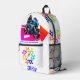 Get ready to ride into a brand new school year with the Next Stop: 3rd Grade! backpack. This bold and stylish design features a confident female motorcycle rider in blue and black, blazing the way for adventure and learning. The front pocket showcases a colorful triangle student symbol with a pencil at the center, surrounded by soft white corners adorned with smaller matching icons. Finished with a custom name Girly on the bottom edge, this backpack is perfect for girls who love speed, style, and school success.