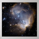 Dieses Bild zeigt hellblaue, neu geformte Sterne, die mitten in einer faszinierenden, sternbildenden Region, der so genannten N90, eine Höhle blasen. Die hochenergetische Strahlung, die von den heißen jungen Sternen in N90 ausstrahlt, untergräbt die äußeren Teile des Nebel von innen, da die diffusen äußeren Bereiche des Nebel verhindern, dass die energetischen Abflüsse direkt vom Cluster abfließen. Da N90 weit vom zentralen Körper der Small Magellanic Cloud entfernt liegt, können zahlreiche Hintergrundgalaxien auf diesem Bild gesehen werden, die den stellaren Neuankömmlingen eine große Kulisse bieten. Der Staub in der Region gibt diesen entfernten Galaxien eine rötlich-braune Färbung. Kredit: NASA, ESA und das Hubble Heritage Team STScI/AURA)-ESA/Hubble-Zusammenarbeit